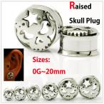 拡張ピアス 14mm Skull&Flame Raised ハイポリッシュ インターナル ダブルフレア トンネルピアス ボディピアス