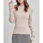ニット セーター 袖口ボタンパフスリーブボトルネックニット レディース