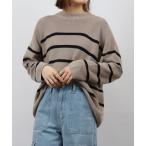 ニット セーター ボトルネックボーダープルオーバー レディース