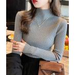 ニット セーター ボトルネックリブニットトップスレディース レディース