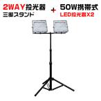 [セット]極薄LED投光器 50W 2個 三脚スタンド付 正圧排気弁付き 10400lm 85V-265V 160°広角照射 昼光色 屋外 防水 IP67 高輝度 高効率 省エネ PSE PL保険