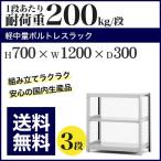 スチールラック スチール棚 ボルトレス 軽中量棚 耐荷重200kg/段 高さ700 横幅1200 奥行300 単体 3段