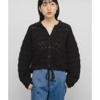カーディガン ショート丈シャギーリボンニットカーディガン レディース