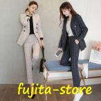 フォマールスーツ セットアップ レディース 2点セット ジャケット パンツ ビジネスリ クルート チェック柄 体型カバー カジュアル 通勤 セレモニー 卒業式