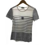 CHANEL◆Tシャツ/40/コットン/WHT/ボーダー/c-tk-5914//