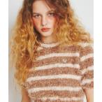 tシャツ 5GG片畦編みモヘアニットボーダーポロニット レディース