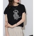 tシャツ EGLANTINE 犬デザイン刺繍 フレンチスリーブカットソー レディース