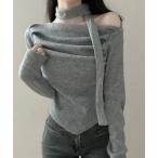 tシャツ チョーカー付き ドレープワンショルダートップス レディース