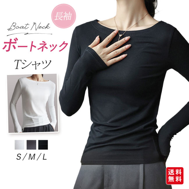 【9%OFFクーポン配布中~】カットソー レディース ボートネック Tシャツ 長袖 トップス ロンT インナー シンプル 重ね着 無地 大人 おしゃれ カジュアル シンプル オフィス