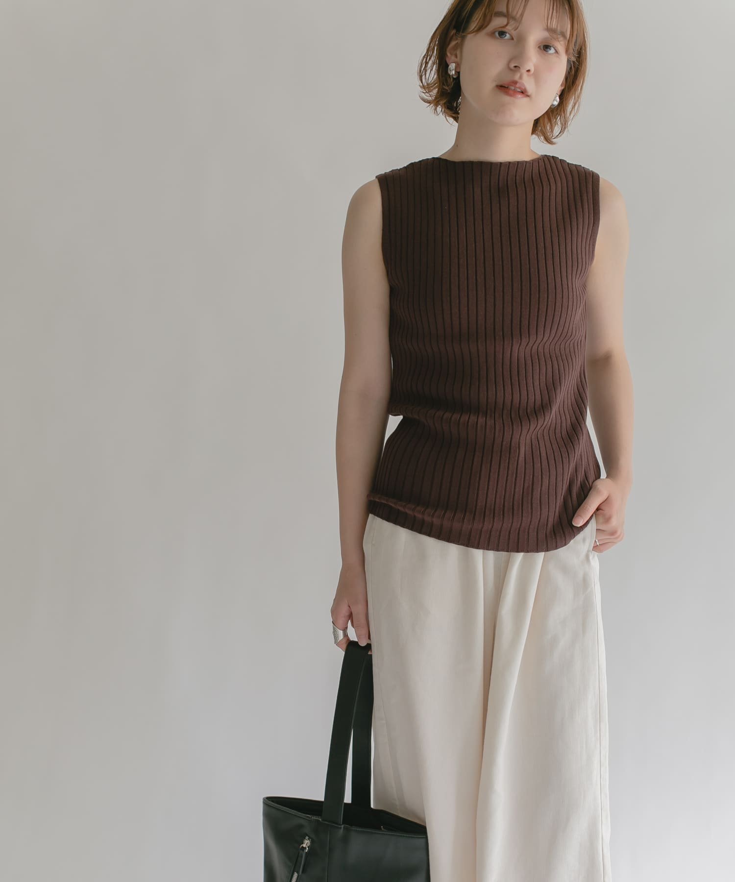 【SALE/70%OFF】KBF ボートネックRIBニットタンクトップ ケービーエフ トップス ノースリーブ・タンクトップ ピンク ブラウン