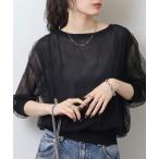 tシャツ Anna Nicola チュールドッキングシアーニット7分袖トップス レディース