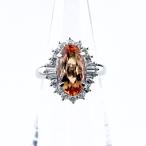 インペリアルトパーズ デザインリング プラチナ 指輪 メレダイヤ リング 10号 Pt900 ダイヤモンド インペリアルトパーズ レディース 中古
