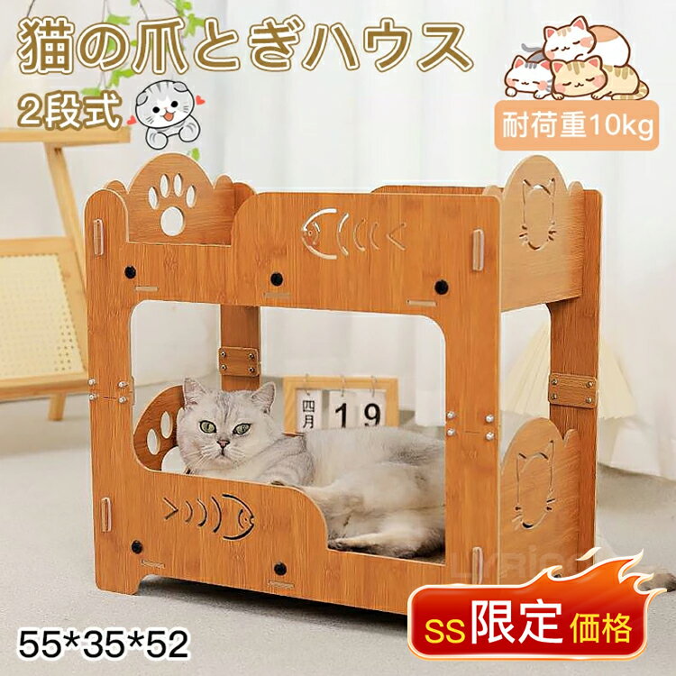 【11/30まで~先着11%OFFクーポン!!】猫 爪とぎ ハウス 猫つめとぎ ダンボール キャットハウス 両用 高密度段ボール 猫用 多頭飼う 爪とぎ兼ベッド 段ボール ストレス解消 猫箱 二層 組立簡単 木製 小中型猫 爪研ぎ2枚 両面使え ゴムで固定 ペット用品