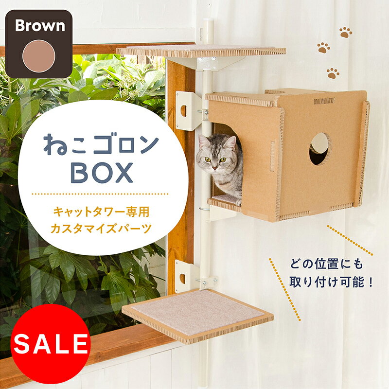 [25%OFF★SALE]キャットタワー専用ボックス (ブラウン) 本体別売り 日本メーカー 送料無料 窓際 キャットハウス おしゃれ 猫用品 省スペース スリム 多頭飼い 日本製(CTE-B2)【ねこゴロン オプション品】