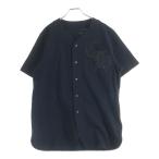 CHROME HEARTS クロムハーツ クロスボールボタンCHレザー付ベースボール半袖シャツ ブラック