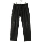 クロムハーツ サイズ:32インチ CARPENTER FLERKNEE LTHR クロスボールボタンフレアニーレザーロングパンツ 中古 SS07