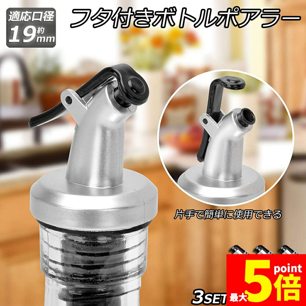 ボトル ポアラー 3個セット スイッチキャップ オイルボトル ヒンジ フタ付き オリーブオイル 酒 カクテル ボトルの注ぎ口 オイル瓶 ダブル醤油瓶口 送料無料 3-BOTOBOA