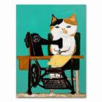 ポスター おしゃれ 額付 アートポスター 動物イラストシリーズ ネコ・ミシン デザインNO-4