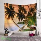 自然風景タペストリー 美しい海 日の出 ココナッツの木 ハワイアン風 青空と白雲 多機能 布ポスター おしゃれな壁掛け インテリア ホームデコレーション