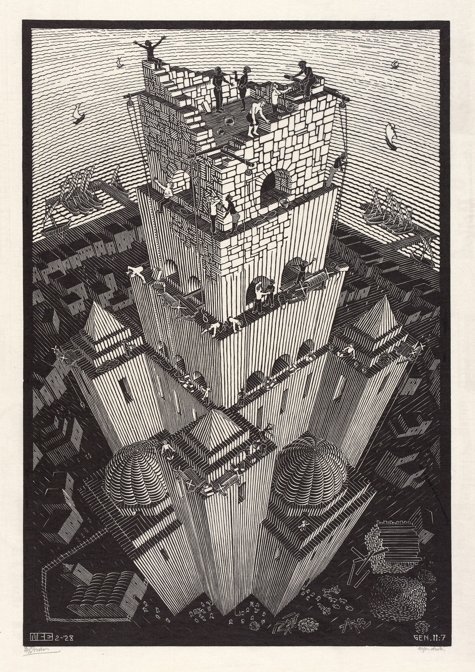マウリッツ・エッシャー | アルミ額装ポスター『バベルの塔』(520×620×7.5mm) -おしゃれインテリアに絵画アートポスター-