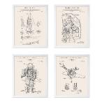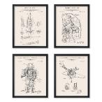 【並行輸入品】 ポスター マスター 4ピース 宇宙 青写真 ポスター - 航空宇宙特許プリント - 宇宙船、宇宙服、衛星、ロケットアート - 素晴らしい寮やオフィスの