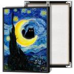【並行輸入品】 TYOHU 面白い 星月夜 猫 キャンバス ウォールアート 有名な油絵 黒猫ポスター 素敵な猫 花柄 絵画 カラフル 抽象 農家 ギャラリー 美的 部屋 壁