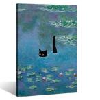 【並行輸入品】 Gwindrise Monets 睡蓮の池の黒猫:ヴィンテージウォールアート 絵画 12x16インチ ラップキャンバスプリント フレーム入りポスター
