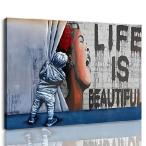 【並行輸入品】 額入りバンクシーストリートグラフィティ ウォールアート装飾 大きな人生は美しい抽象画 キャンバス絵画 プリント カラフル モダン ポスター ア
