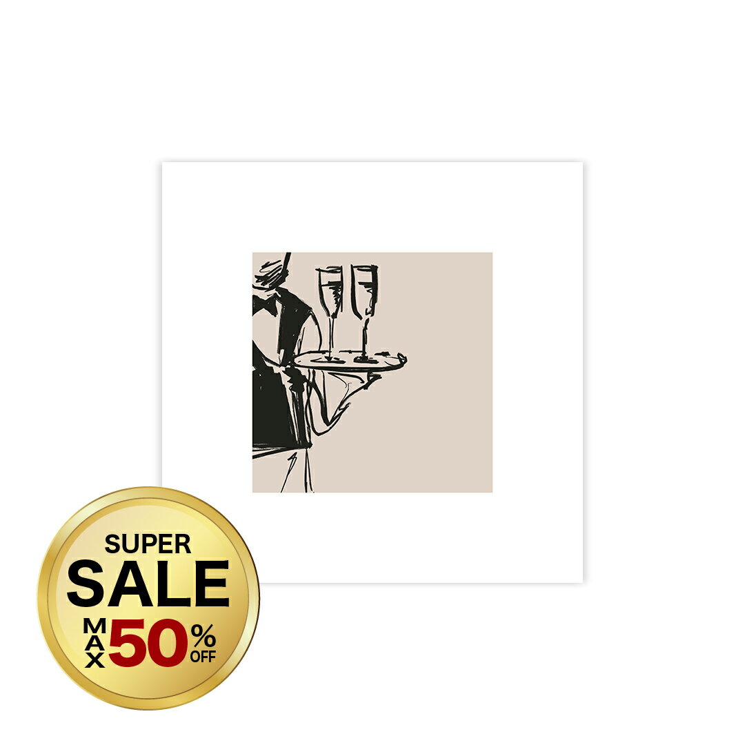 【 30%OFF 20時〜】飾りやすい 正方形 選べる 2 サイズ バランスの取りやすい スクエア アート 高級紙・高品質印刷 日本製 LINSL【 アートポスター ポスター 北欧 モダン おしゃれ ウェイター ワイン インテリアアート 玄関 寝室 壁掛け 福袋 リンスル 】 sq0016