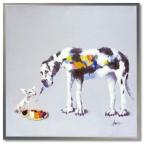 アートポスター 額付 動物画 オイル ペイント アート ドッグペインティング L ユーパワー 83×83cm 特大配送 可愛い 犬