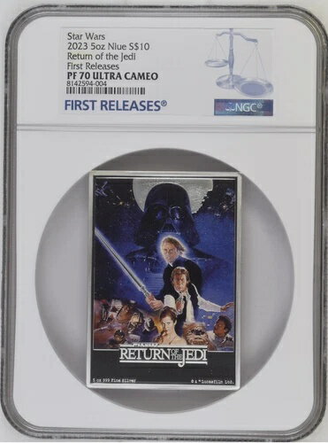 2023年 ニウエ スターウォーズ ジェダイの帰還 5オンスポスター カラーシルバー NGC PF70-