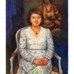 斎藤秀夫 「コローの絵の前で」 油彩20号 額付き