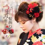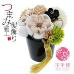髪飾り 成人式 赤 白 黒 つまみ細工 Uピン 11点セット 「フラワーポット、華リボン 赤・赤黒・白 全3色 No.8346」 (メール便不可)<H>ss2512wkk10