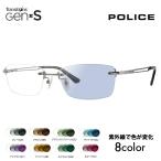 調光メガネ 眼鏡 ポリス POLICE 度付き 度なし 調光サングラス メンズ 男性 UVカット ブランド 近視 近眼 乱視 だて 伊達 スクエア チタンフレーム 軽量 VPLR35J