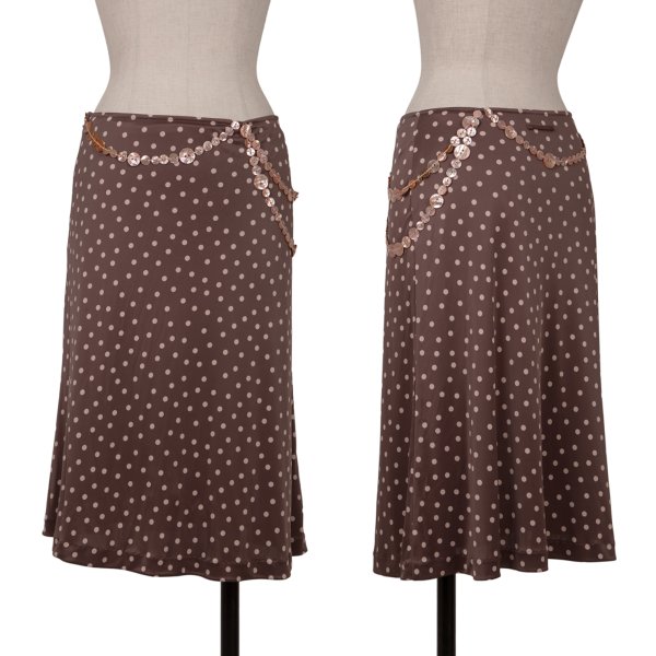 【中古】 ジャンポールゴルチエ ファムJean Paul GAULTIER FEMME ポリボタン装飾ドットプリントストレッチスカート 茶ピンク40【レディース】