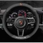 ポルシェ PORSCHE ハンドルカバー ステアリングホイールカバー 軽自動車 カーボン革+スエード素材 通気滑り止 ロゴ入り