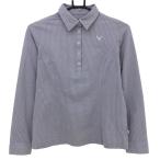 キャロウェイ 長袖ポロシャツ ネイビー×白 ストライプ柄 レディース M ゴルフウェア Callaway