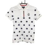 キャロウェイ 半袖ポロシャツ 白×ネイビー 星柄 スター ベア ハーフジップ レディース M ゴルフウェア Callaway