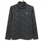 キャロウェイ 長袖ポロシャツ 黒×白 英字総柄 色褪せ レディース L ゴルフウェア Callaway