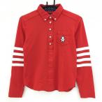 キャロウェイ 長袖ポロシャツ レッド 袖白ライン 胸ポケット ベアワッペン ボタンダウン レディース M ゴルフウェア Callaway