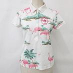 キャロウェイ CALLAWAY ゴルフ ポロシャツ 半袖 ロゴ 総柄 フラミンゴ 白 ピンク ホワイト S レディース