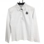 マンシングウェア 長袖ポロシャツ 白×黒 ボーダー織生地 胸元ワッペン レディース M ゴルフウェア Munsingwear