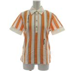 マンシングウェア MUNSINGWEAR Grand-Slam ポロシャツ M 白 ホワイト オレンジ ストライプ柄 襟付き 半袖 /GG ■MA レディース