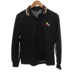 マンシングウェア MUNSINGWEAR ポロシャツ 長袖 ボーダー ポケット ロゴ ゴルフ 薄手 Lサイズ 黒 ブラック ■YHS2 メンズ