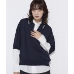 ニット セーター ケーブルニットクレリックポロシャツ レディース
