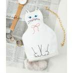 ポーチ 「cache cache」ネコ刺繍ポーチ マチあり 自立型 ファー付 ねこ 黒猫 白猫 レディース