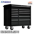 ポーチ付 バーコ キャビネット 複合2列12段引き出し ロールキャブ ブラック ラバートップ 1475KXL12PC 黒 1台 高985×幅1016×奥行501mm ■▼347-2013