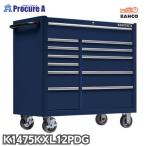 ポーチ付 バーコ キャビネット 複合2列12段引き出し ロールキャブ ミッドナイトブルー 1475KXL12PDG 1台 高さ985×幅1016×奥行501mm ■▼254-3908