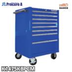 予約注文 ポーチ付 バーコ BAHCO 8段引き出し ロールキャブ ブルー ゴムマット仕様天板 K1475K8PCM 高さ955×幅677×奥行501mm 1台 キャビネット ■▼834-5547