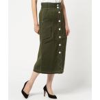 スカート ポーラフロントボタンステッチミモレ丈タイトスカート